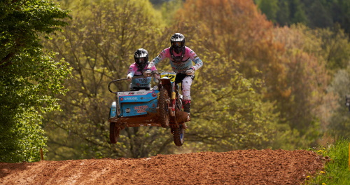 Auf drei Rädern gingen die Teams der Deutschen Seitenwagen Meisterschaft an den Start. Die Seitenwagen Klasse ist seit jeher der Zuschauermagnet des Motocross Sports und lockte auch dieses Jahr wieder zahlreiche Besucherinnen und Besucher an die Rennstrecke im Aufenauer Talkessel. Sowohl das freie Training als auch den ersten Wertungslauf sicherten sich Tim Trümmer aus Hürtgenwald mit Beifahrer Patrick Schneider vor Adrian Peter aus Marburg mit Julian Zimmermann. Der zweite Wertungslauf endete recht ähnlich, änderte jedoch nichts mehr an der Reihenfolge in der Gesamtwertung. Auf Rang drei fuhr der Niederländer Stephan Wijers mit Beifahrer Joel Hoffmann.