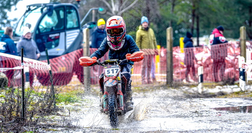 Der zweite von insgesamt drei Läufen des ROCK Oil Enduro Wintercup führte das Fahrerfeld nach Reetz – und einmal mehr spielte das Wetter eine entscheidende Rolle. Nach einsetzendem Tauwetter unter der Woche hatte erneuter Frost am Donnerstag und Freitag zahlreiche Wasserstellen wieder gefrieren lassen. In der Nacht vor dem Rennen setzte zusätzlich Regen ein, der die Strecke erneut antaute und stellenweise tief aufweichte. Bei rund acht Grad am Renntag entwickelte sich so eine anspruchsvolle Mischung aus rutschigem Untergrund, schmierigen Auffahrten, ausgefahrenen Spurrinnen und zunehmend kräftezehrenden Schlammfeldern. Die schwierigen Bedingungen sorgten bereits im Vorfeld für einige Absagen – und verlangten den verbliebenen Startern alles ab.