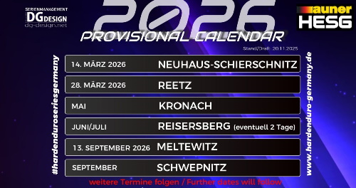 Bereits am 14. März 2026 fällt der Startschuss in Neuhaus-Schierschnitz. Die technisch anspruchsvolle Strecke bietet optimale Bedingungen für einen fordernden Auftakt, der das Feld sofort aufmischt. Der frühe Termin ist bewusst gesetzt, um dem überfüllten April auszuweichen und den Fahrern eine bestmögliche Planbarkeit zu ermöglichen.