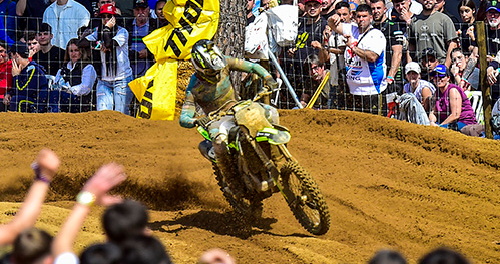 Renaux started to move up the order, passing Adamo at the end of the longest jump section on lap seven, and as he started to look interested in the next spot, Febvre passed Vialle for third with a big double jump that only the 450cc machines could attempt, right in front of the packed grandstands! Renaux was able to get up to fourth with three laps to go, a confidence-boosting ride for the Yamaha man.