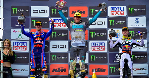 In MX2, history was made for the Triumph Racing Factory Team by South African Camden McLellan, who took the first ever Grand Prix victory for both himself and the British manufacturer in its current form. His teammate Guillem Farres had delighted his home crowd with a great win in race one, but was prevented from challenging for the overall at the start of race two.
