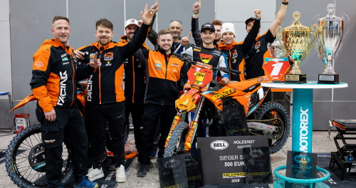 In der Klasse SX2 gab es am Wochenende kein Vorbeikommen an der Startnummer 1: Calvin Fonvieille (KTM Sarholz Racing Team) dominierte das Geschehen nach Belieben und sicherte sich mit der Maximalpunktzahl von 75 Zählern souverän den Titel ‚Prinz von Dortmund‘. Nachdem er Jules Pietre bereits am Freitag und Samstag den Titel im ADAC SX Cup abgerungen hatte, löste er ihn nun auch als Prinz in der Westfalenhalle ab. Seit 2019 stand Fonvieille in Dortmund jedes Mal auf dem Podium – 2026 gelang ihm nun der Sprung ganz nach oben. Zusätzlich sicherte er sich das Preisgeld von 500 Euro für den Bell Holeshot Award.