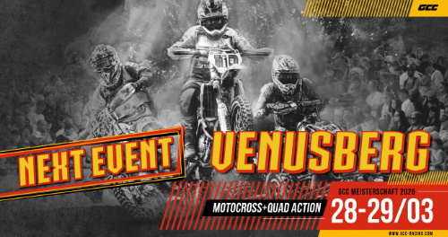 Am 28. und 29. März 2026 fällt der Startschuss für die neue Saison der Deutschen Cross Country Meisterschaft (GCC). Erstmals findet der Auftakt der größten Motorrad Offroad Serie im sächsischen Venusberg statt. Fahrer und...weiterlesen |
