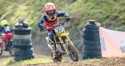 Melvin Gohlke zeigte in Höchstädt eine dominante Leistung und sicherte sich den Tagessieg mit zwei Laufsiegen. Bereits im Zeittraining setzte der Meisterschafts-Spitzenreiter die Bestzeit und unterstrich seine Favoritenrolle. In den beiden Rennen waren die Spitzenplätze klar vergeben: Gohlke gewann jeweils klar vor Eugen Trylinskyi (D/Husqvarna) und Willy Grünberg (D/KTM). Mit dem Tagessieg von Gohlke vor Trylinskyi und Grünberg scheinen sich die drei Spitzenfahrer in der Meisterschaft etabliert zu haben. Gohlke erhielt den Sachpreis in Form eines Mousse, den in dieser Saison Werthmann Racing in Kooperation mit Mefo-Mousse für den jeweiligen Tagessieger der DMX 50 stiftet. Parker Atzrodt (D/Zweirad Pfeil) und Luis Ehrlich (D/ADAC Sachsen e.V./Cobra Moto/Bike Performance) belegten in Höchstädt die Plätze vier und fünf. Auch in der Meisterschaft liegt Gohlke klar und mit der Maximalpunktzahl in Führung vor Trylinskyi und Grünberg, die gleichauf sind.