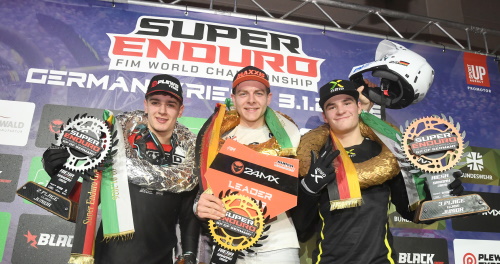 In besagter Top-Kategorie waren mit dem Bayern Manuel Lettenbichler und Tim Apolle aus Sachsen-Anhalt auch zwei Deutsche mit von der Partie. Der Hard-Enduro-Weltmeister der letzten vier Jahre wurde bei seinem SuperEnduro-Comeback nach zweijähriger Abstinenz guter Sechster und zog folgendes Resümee: „Das war heute nicht so schlecht. Ich denke, ich komme langsam wieder in die Richtung, in die ich hin möchte. Die Stimmung war wieder der Wahnsinn und mega geil. Ich habe mich auch am Ende bei den Fans auf meine Weise bedankt.“