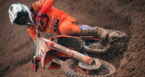 “The track in Mantova was tricky, with a loose top layer but hard underneath. I started the day with the third-fastest time in my group, which I wasn’t completely satisfied with. In the first moto I started strong, but when I tried to take the lead, I crashed. After that, I crashed again and went into the pits for new gloves and goggles. I treated the rest of the moto as a training session, and it went well with good lap times. In the second moto my start wasn’t good, but despite visibility problems caused by moisture, I was able to work my way forward. The preparation is going well, and I’m looking forward to the coming weeks leading up to the first Grand Prix.”