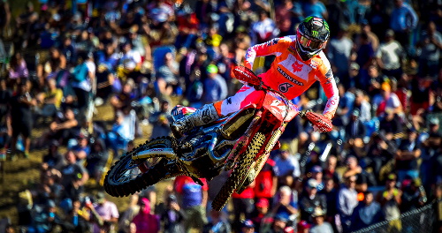 Herlings had found his groove in the last third of the race and closed in on his youngest teammate Vialle, sweeping around the outside of the Frenchman to take the lead without chance of retaliation, and he celebrated his first race win on the Honda by punching the air and accepting a gracious high-five from Vialle after the finish line!