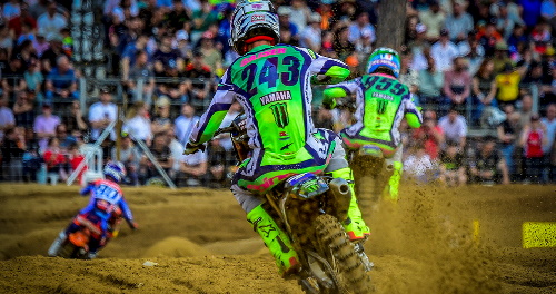The German couldn’t quite hold the pace, and the charge was coming from behind him. After fighting past rookie Janis Reisulis on the Monster Energy Yamaha Factory MX2 machine, Camden McLellan was building momentum, especially through the wave section where he gained significant time every lap! He past the Champ there on lap eight, and set after his teammate out front!