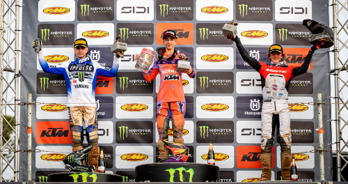 Elsewhere, riders were charging through the pack after poor starts, with battles forming for the top positions. David Cracco from Dreams Racing was among those under pressure as riders fought their way forward. At the front, Moritz Ernecker took control and went on to claim his first race victory, ahead of the solid Frenchman Sleny Goyer form Yamaha Europe Monster Energy MJC and Swiss Ryan Oppliger.